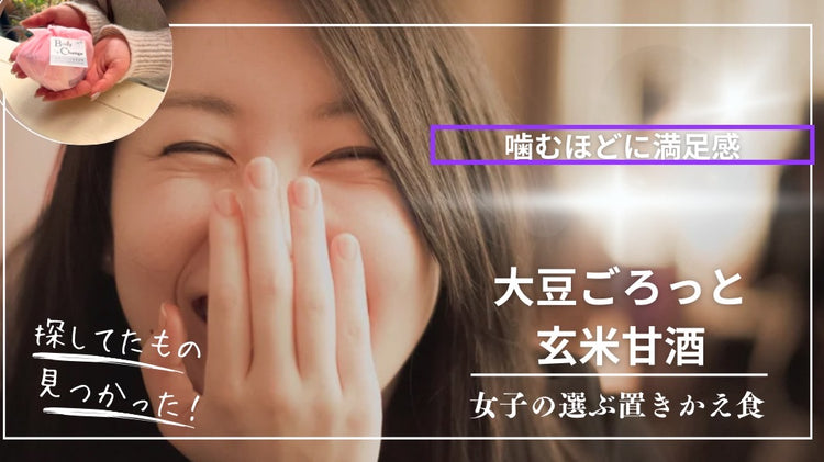 「大豆ごろっと玄米甘酒」は、これまでの飲む甘酒とはひと味違う“噛む甘酒”。